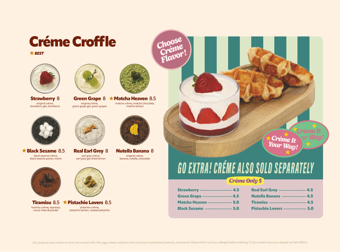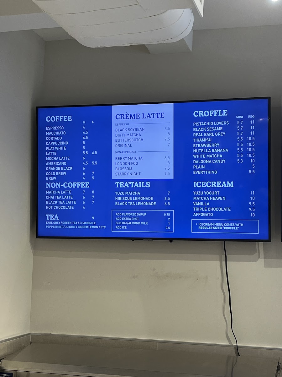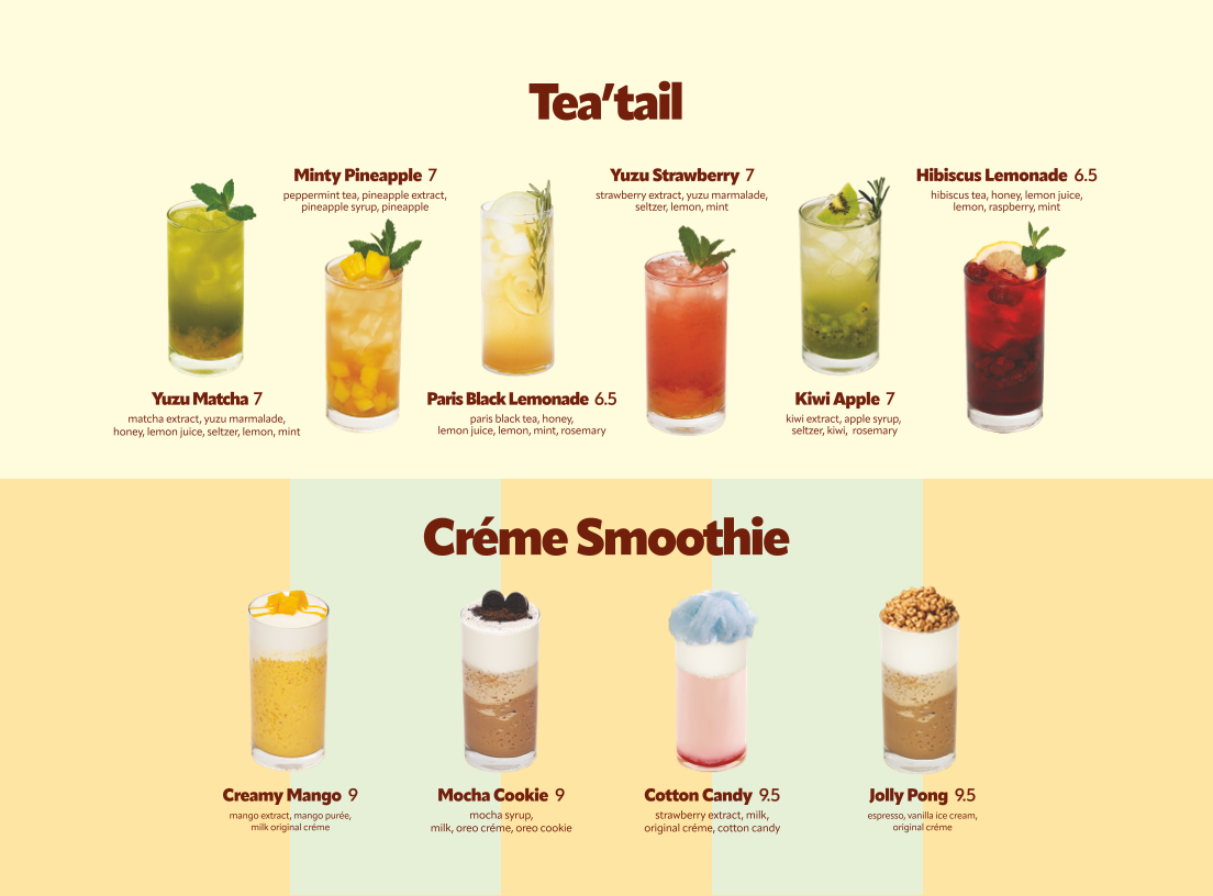 The beverage menu features a variety of aromatic teas, all priced at a modest US$4.00, including favorites like English Breakfast and refreshing Lemon Ginger. For dessert lovers, the cafe offers a range of enticing cremes such as Matcha Heaven and Pistachio Lovers, each priced between US$4.50 and US$5.00. The cakes, beautifully presented and utterly delicious, include Nutella Banana and Tiramisu, with prices ranging from US$9.50 to US$10.00.